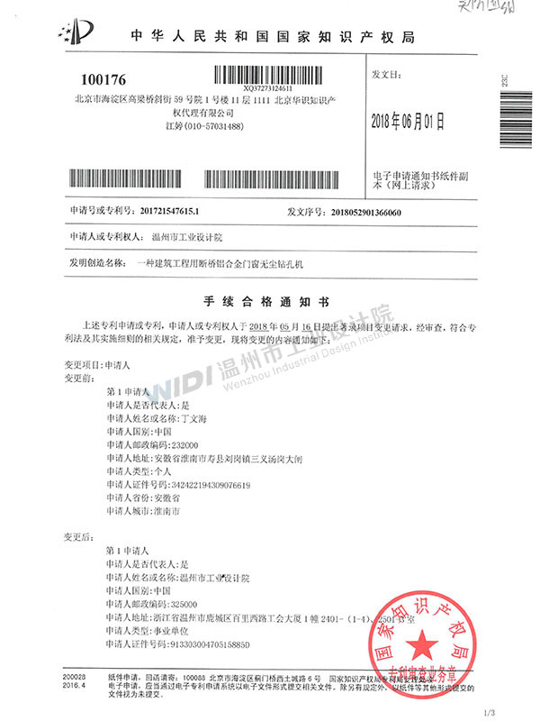 一種建筑工程用斷橋鋁合金門窗無塵鉆孔機手續(xù)合格通知書 (3)