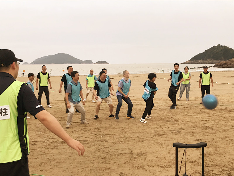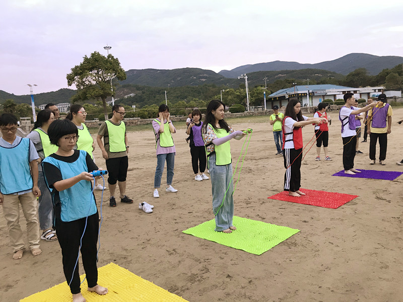 “破冰行動(dòng)”首先拉開(kāi)活動(dòng)序幕,“破冰”即打破員工之間的拘謹(jǐn)和束縛,尤其是兩家單位的陌生感,讓他們?cè)诮酉聛?lái)的活動(dòng)中能積極的參與進(jìn)來(lái)。簡(jiǎn)單的自我介紹認(rèn)識(shí)之后,隊(duì)伍分成四組進(jìn)行競(jìng)賽,“躲避球”考驗(yàn)的是團(tuán)隊(duì)的整體協(xié)調(diào)配合能力;“救生圈接力賽”在裁判的一聲令下,全員接力比賽決勝負(fù),緊張之余又趣味十足;“指壓板跳繩”難度系數(shù)高,讓隊(duì)員們摩拳擦掌,紛紛上場(chǎng)較量各隊(duì)實(shí)力,一起“腳”逐快樂(lè);“聽(tīng)歌識(shí)曲”輪番播放不同年代歌曲讓大家回憶經(jīng)典同時(shí)能猜出歌名。現(xiàn)場(chǎng)活動(dòng)熱烈,參與人員熱情高漲,笑聲不斷。