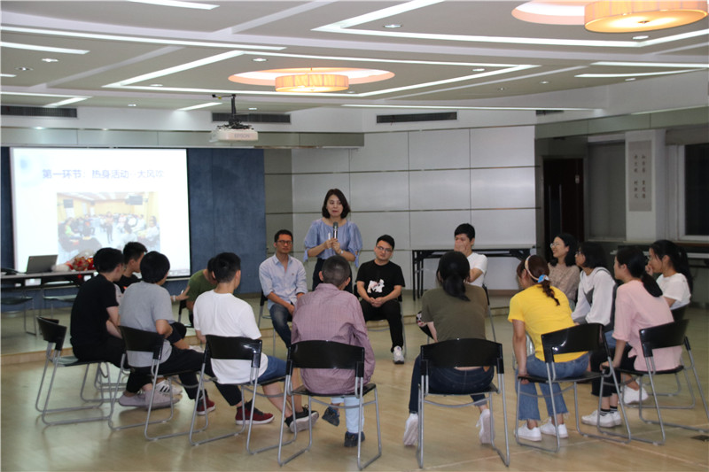 活動在勵志歌曲“追夢赤子心”的音樂聲中拉開序幕。大家在指導老師的引領下,分成二個小組共同進入“大風吹”“請讓我為你按摩一下下”“優(yōu)點轟炸”“銜紙杯傳水”
